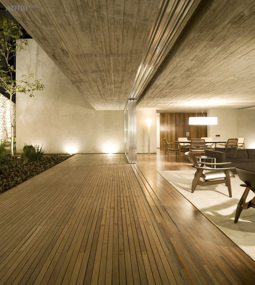 此方案突破以往的封闭式空间概念,如同天井般的烟囱连接大厅与室外天空。混泥土与狭窄木质天花模板搭配,为达到空间上的舒适度,横比例的采用恰到好处。