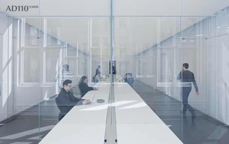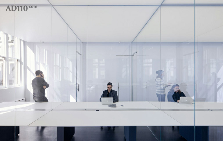 这是建筑事务所 SO-IL 在纽约设计的一个办公空间,室内被分为两个对称的空间,整体十分明亮干净,PS:里面办公,应该不是很舒适,不过从设计的角度来说:这是个好设计[lol]