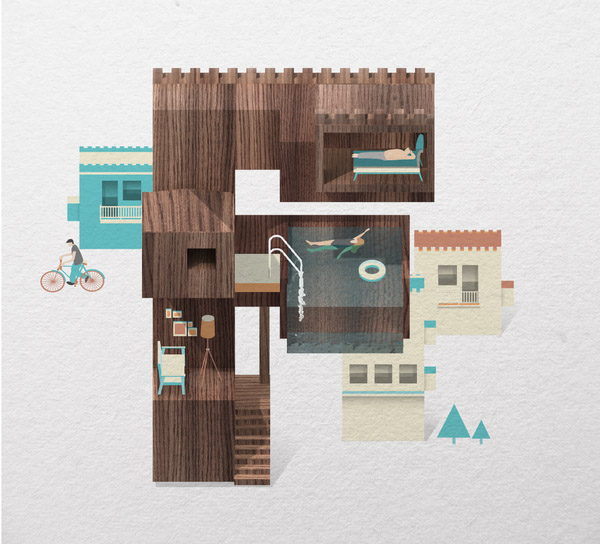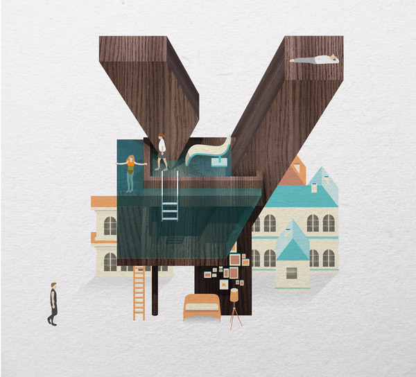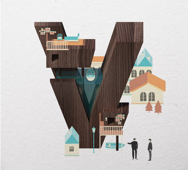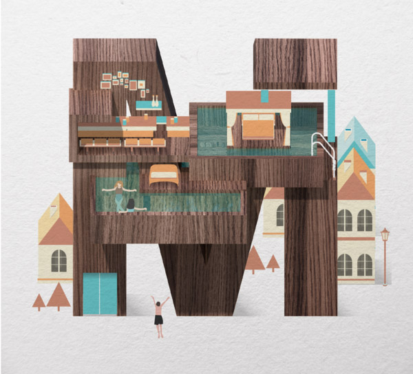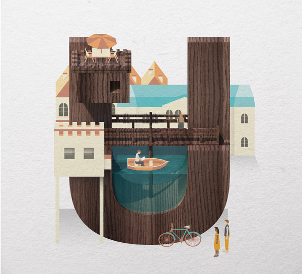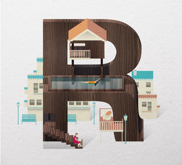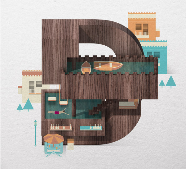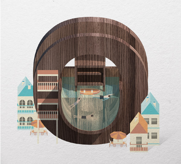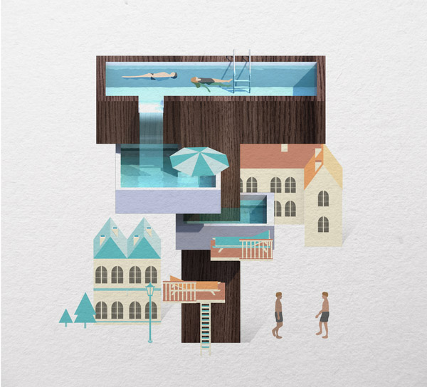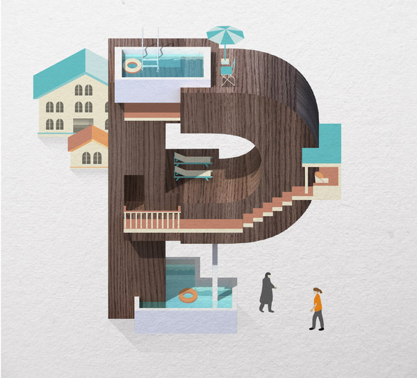 以下作品是他以水、游泳池为主题创作的字体作品。更多他的作品可访问:www.mazakii.com 或加他的 Twitter 帐号(有可能在中国内地无法访问)